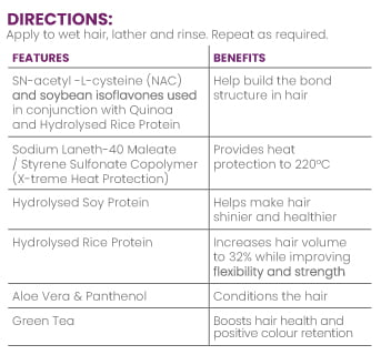 Apply to wet hair, lather and rinse. Repeat as required.